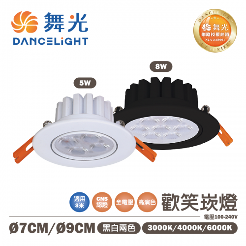 【舞光】歡笑崁燈 7CM/5W 9CM/8W 高演色性 黑殼/白殼 全電壓