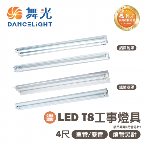 【舞光】LED T8 4尺工事燈 單管/雙管 鐵烤漆/鋁反射 吸吊兩用 燈管另計...