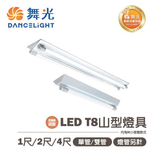 【舞光】LED T8 山型燈具 單管/雙管 無IC 有IC(附夜燈) 1尺 2尺...