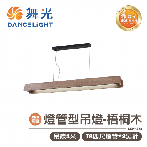 【舞光】LED 4尺 單管燈管型吊燈 梧桐木 吊線1米長 燈管另計